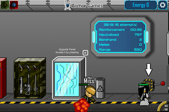 Fazia tempo que não rolava nada com tanto controle assim aqui no Jogaí… Ainda assim, Night At The Laboratorium é extremamente simples: Cê compra upgrade de armas, roupas e itens, constrói turrets, e aí mete a bica nos inimigos pra ter espaço suficiente pra atirar neles. Não vou dizer que é um jogo incrível, mas porram, de vez em quando é bom um treco desses, simples e direto, com bastante violência contra monstros. Aliás, vale ressaltar: Cê só tem uma única moeda no jogo inteiro pra comprar tudo. E as dicas quando cê perde o jogo são, por incrível que pareça, bem úteis até.